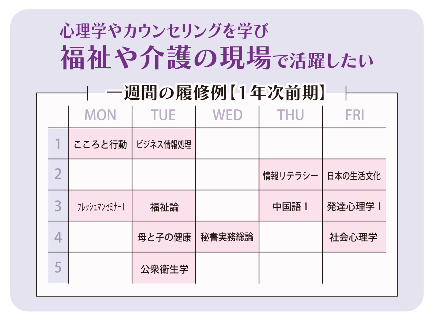 現代の子ども、及び子育てする親さらに地域社会を取り巻く諸問題を検討し、子どもの健康な発達と福祉のあり方を考えていきます。
