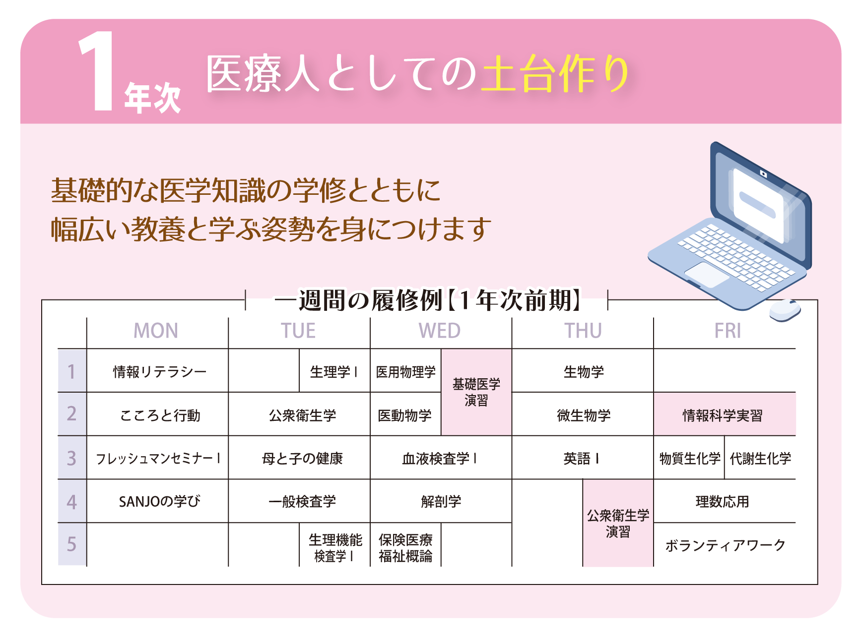 理数科目に不安がある人も安心して学べるよう、高校レベルから医療に必要な基礎をしっかり身につけます。